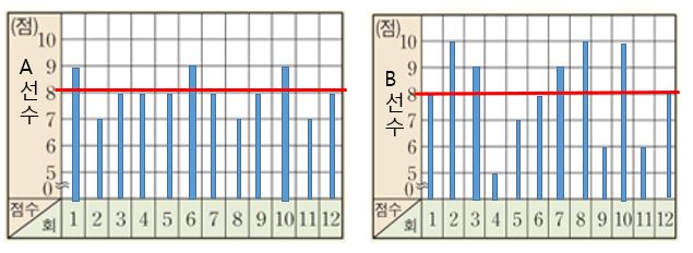 A선수는 변량이 흩어져 있는 폭이 작지만