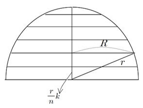 반구의 높이 r을 일정한 간격으로 나눠서