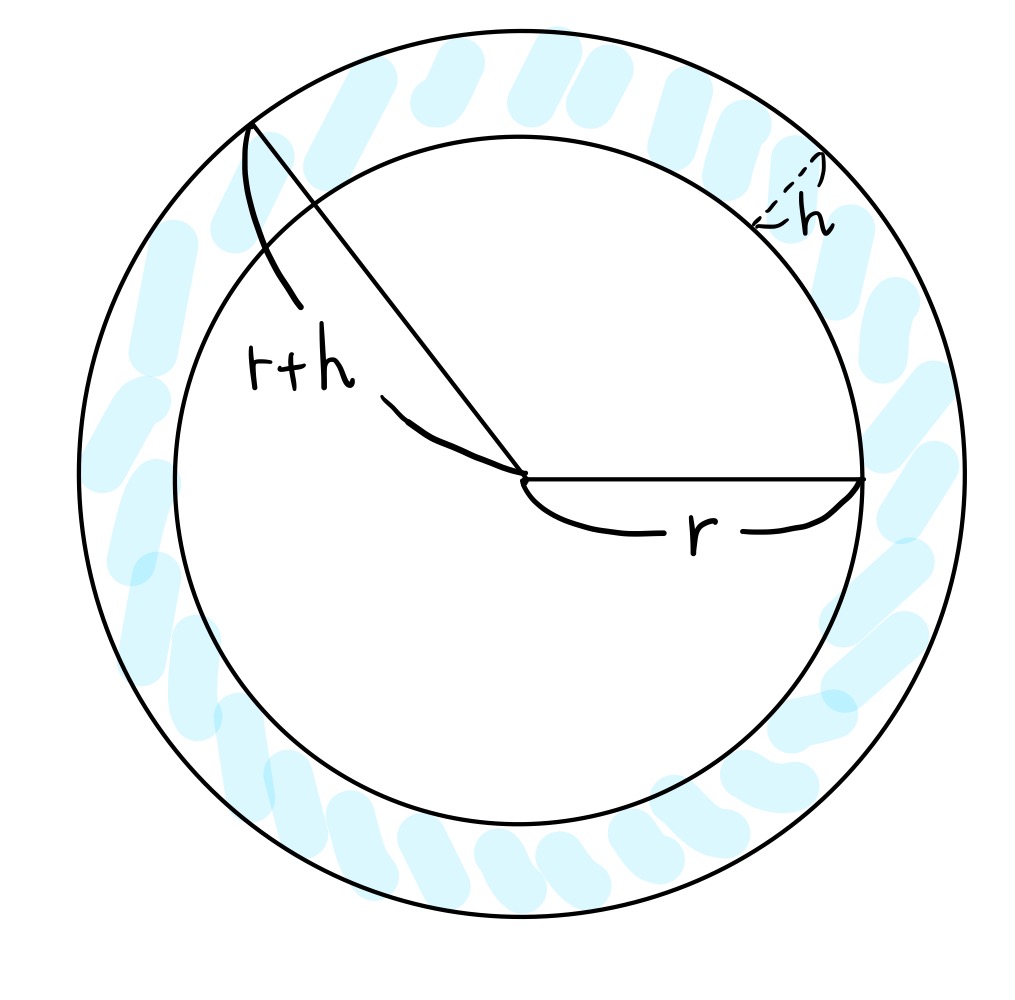 늘인 반지름이 (r+h)인 원을 생각해 보자.