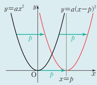 1) 이차함수 y=ax^2의 그래프를 x축의 방향으로 p만큼 평행이동한 것이다.