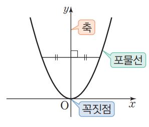 [축] : 포물선은 선대칭도형으로 그 대칭축을 포물선의 축이라고 한다.
