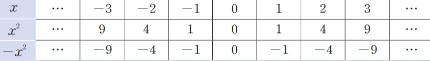 y= - x^2 그래프를 그리기 위해 y=x^2와 y= - x^2의 대응표부터 살펴보자.